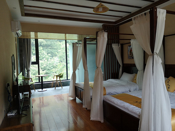 2016年,看到這一前景的代輝決定回鄉(xiāng),投入40萬元給自家平房加蓋一層,裝修出三間屋子當(dāng)做客房。其中,自籌20萬,貸款20萬,享有三年貼息貸款優(yōu)惠,由政府貼息7%。代輝還有烹飪手藝,村里辦紅白事總請(qǐng)他當(dāng)主廚,因此,農(nóng)家樂既是旅店又是餐館,生意一點(diǎn)不愁,“旺季一天能有30來人,住宿總是滿員,至少提前一周預(yù)定,一年下來能賺7-8萬塊。”