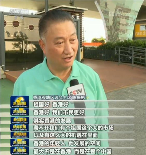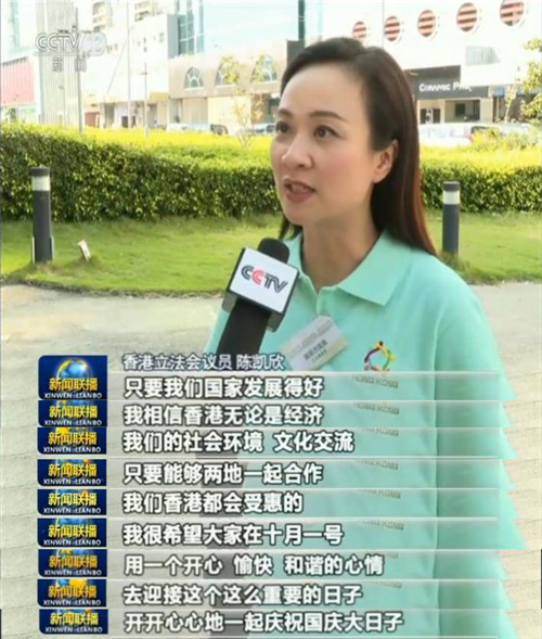 香港各界人士表示,國慶臨近,希望大家能夠同心共賀新中國成立70周年。他們表示,粵港澳大灣區(qū)給香港青年的發(fā)展提供了更廣闊的舞臺和空間,希望青年人能夠把握未來發(fā)展機(jī)遇。