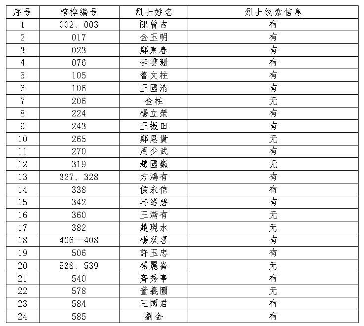 從今天起,我們?yōu)樽?014年起遷回沈陽安葬的在韓志愿軍烈士遺骸尋找親屬。慰籍烈士的英靈,告慰烈士的親人。活動期待著您的參與,期待著您的幫助。希望大家共同努力讓英烈事跡永遠流傳,精神流芳千古。