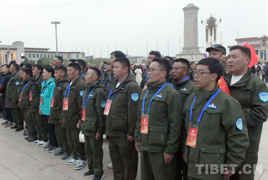 當日凌晨,懷著萬分激動的心情,來自西藏羌塘、珠穆朗瑪峰國家級自然保護區(qū)的野保員一大早就來到了天安門廣場,等候國旗冉冉升起的那一刻。
