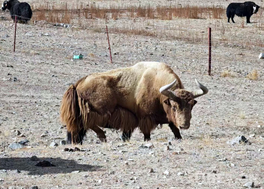 圖為羌塘國家級自然保護區(qū)的一頭金絲野牦牛與放牧的家畜牦牛和諧相處(革吉縣野保員洛洛提供)