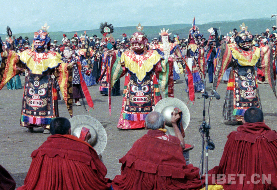 圖為那曲鎮(zhèn)賽馬會(huì)上的神舞表演(唐召明1987年攝)