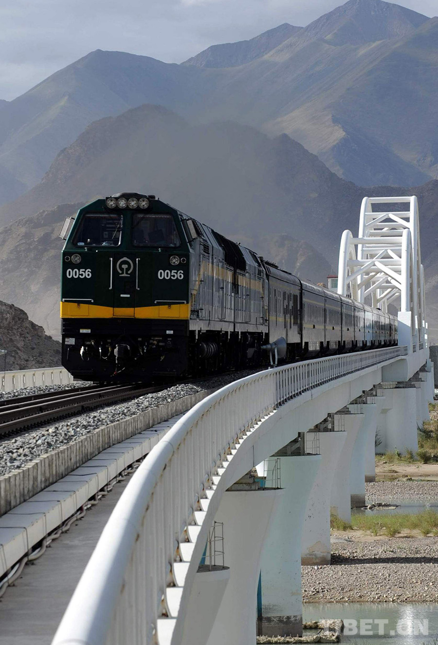這是由拉薩開往北京的京藏列車正在通過拉薩河特大橋(唐召明2010年7月7日攝)