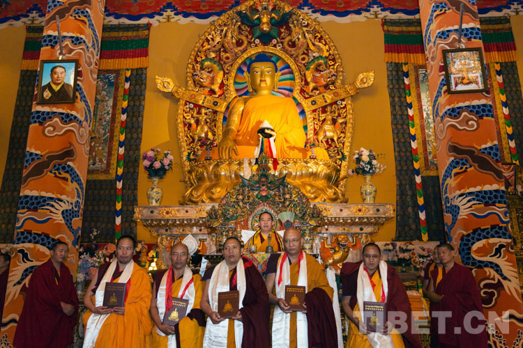 圖為十一世班禪在日喀則市薩迦縣西藏佛學院薩迦寺分院為高僧頒發(fā)“然講巴”學位證書 攝影:鄭朔