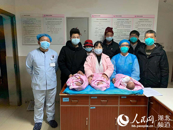 醫(yī)護人員送三名治愈的新生兒回黃梅縣。受訪者供圖