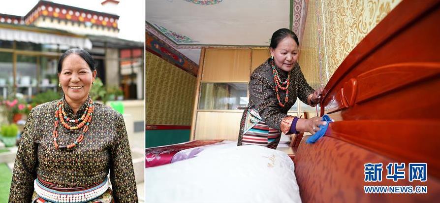 拼版照片:左圖為西藏阿里地區(qū)札達縣札布讓村村民金珠德吉在自家的家庭旅館;右圖為金珠德吉在家庭旅館里打掃衛(wèi)生。古格王國遺址坐落于札布讓村境內。近年來,隨著札達縣“旅游興縣”政策的推進,當地村民巧借“千年古格歷史”大做文化旅游文章,每年吸引眾多游客前來參觀,金珠德吉就勢經營起家庭旅館?,F在,金珠德吉的家庭旅館已有30多個床位,因設施完善、衛(wèi)生良好還被村里評為“金星級”家庭旅館。見到金珠德吉的家庭旅館生意火爆,村民們紛紛效仿。如今,這個只有36戶144人的小村莊有32戶人家都開了家庭旅館(7月26日攝)。 新華社記者 詹彥 攝