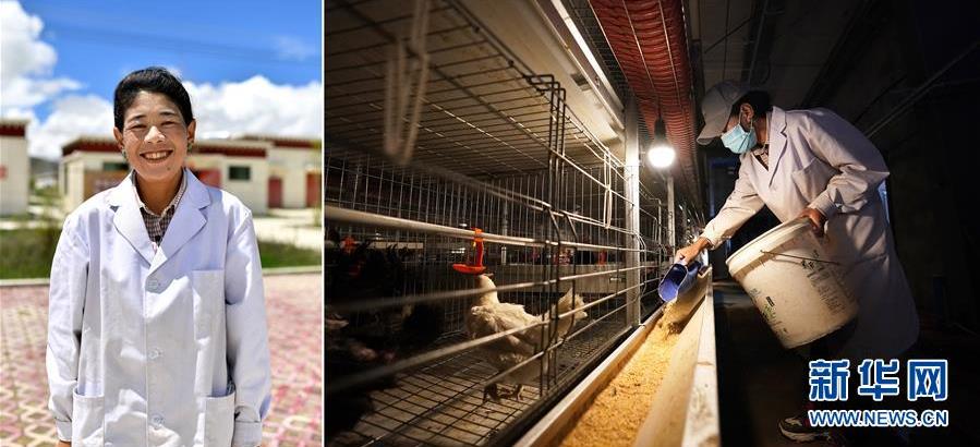 拼版照片:左圖為西藏日喀則市拉孜縣曲下鎮(zhèn)吉如村村民卓嘎;右圖為卓嘎在拉孜縣拉貴藏雞養(yǎng)殖孵化保種基地里忙碌。2020年年初,卓嘎來到拉貴藏雞養(yǎng)殖孵化保種基地工作,很快就學會了藏雞的養(yǎng)殖技術,在這里工作,卓嘎每個月能拿到4000多元的工資(8月1日攝)。 新華社記者 詹彥 攝