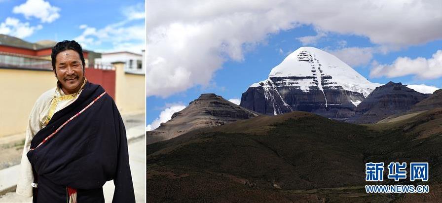拼版照片:左圖為西藏阿里地區(qū)普蘭縣巴嘎鄉(xiāng)崗莎村村民崗瑪達杰;右圖為位于西藏阿里地區(qū)普蘭縣境內的岡仁波齊峰。崗莎村地處海拔6656米的岡仁波齊峰腳下。近年來,前來岡仁波齊峰轉山旅游的游客與日俱增,崗莎村借此大力發(fā)展旅游業(yè),為游客提供吃、住、行、游、購等服務。每到旅游旺季,崗瑪達杰為游客提供騎馬轉山、運輸服務,一年下來有4萬多元的收入(7月27日攝)。 新華社記者 詹彥 攝