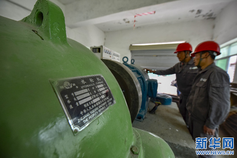 在西藏山南市隆子縣玉麥鄉(xiāng),工作人員在查看水電站的水輪機(jī)(5月27日攝)。新華社記者 王炳坤 攝