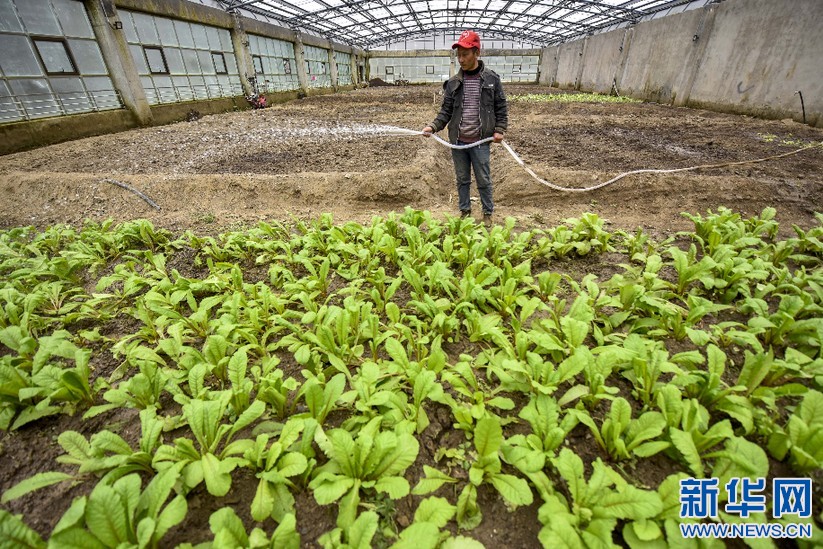 在西藏山南市隆子縣玉麥鄉(xiāng),一名村民在溫室大棚內(nèi)給蔬菜澆水(5月27日攝)。新華社記者 王炳坤 攝