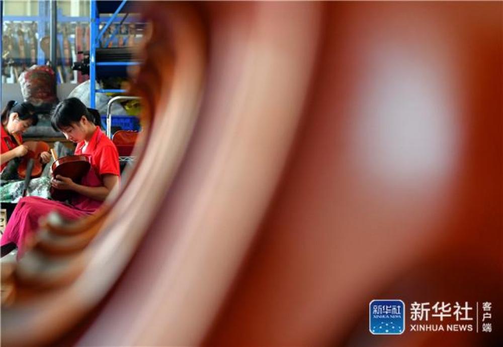 工人在河南駐馬店市確山縣提琴產(chǎn)業(yè)園提琴生產(chǎn)車間打磨琴頭(6月23日攝)。新華社記者 李嘉南 攝