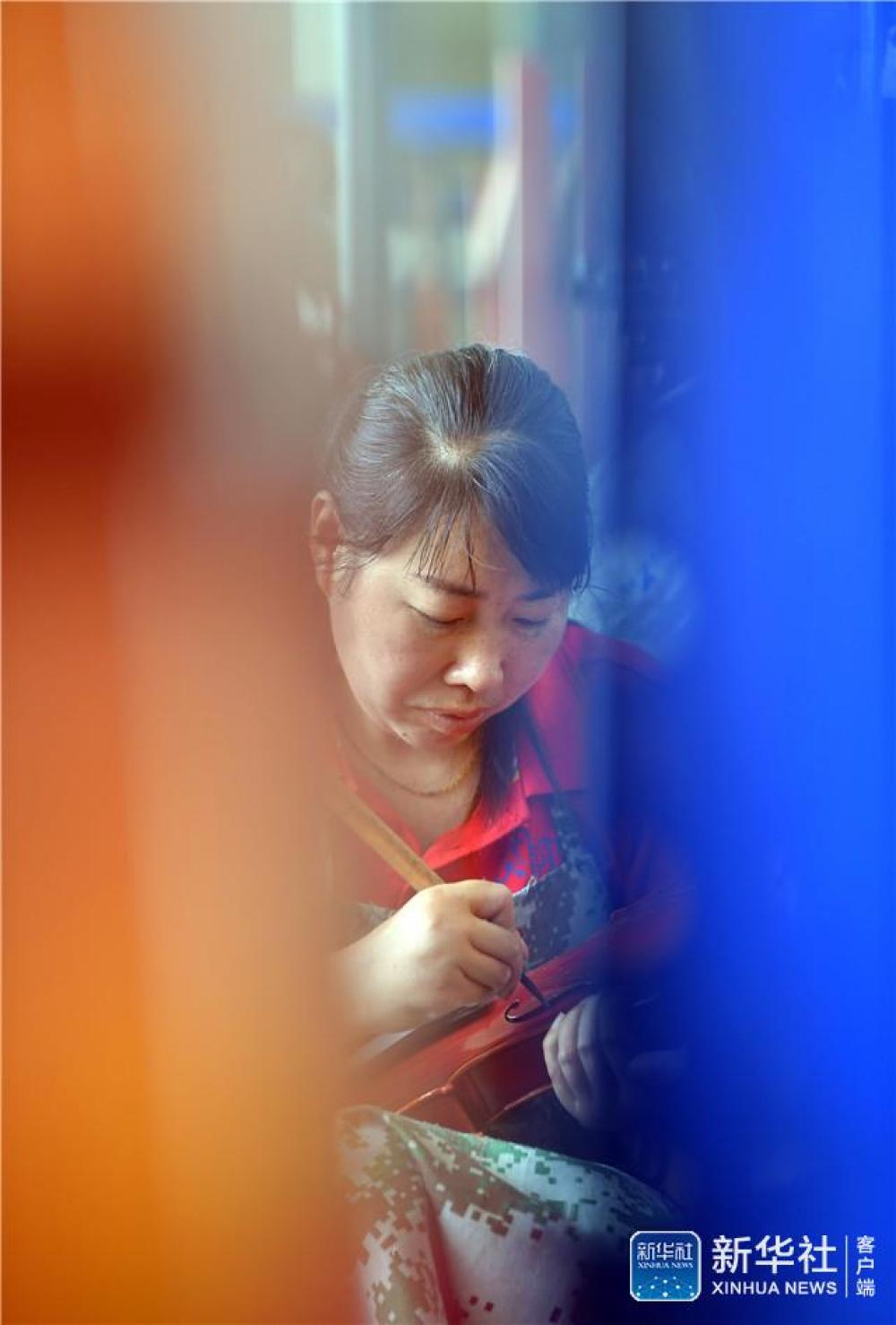 工人在河南駐馬店市確山縣提琴產(chǎn)業(yè)園提琴生產(chǎn)車間工作(7月3日攝)。新華社記者 李嘉南 攝