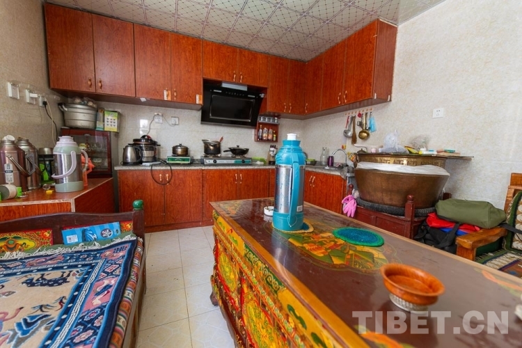 圖為西藏自治區(qū)山南市貢嘎縣昌果鄉(xiāng)團(tuán)結(jié)新村村民德慶家的廚房 攝影:趙耀