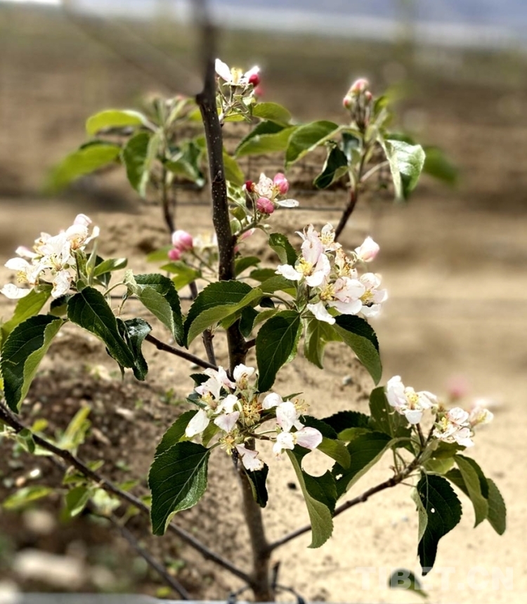 圖為西藏自治區(qū)山南市貢嘎縣昌果鄉(xiāng)團(tuán)結(jié)新村矮化蘋(píng)果基地種植的矮化蘋(píng)果已開(kāi)花 圖片由西藏自治區(qū)山南市貢嘎縣昌果鄉(xiāng)團(tuán)結(jié)新村提供