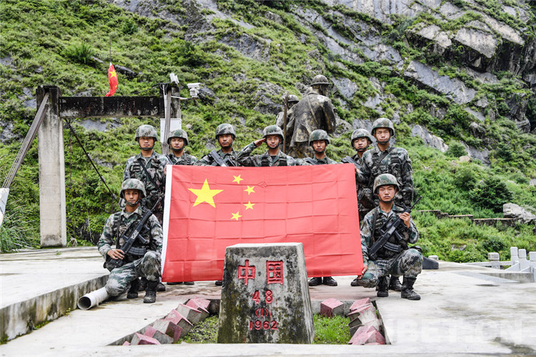 48號界樁就在熱索橋旁邊,一條山澗,分開兩國,界樁上大寫的中國二字,被吉隆溝雨季頻繁的降水一次次沖刷著,巴桑和戰(zhàn)友們重新給“中國”描紅,并拔除界樁周圍的雜草。