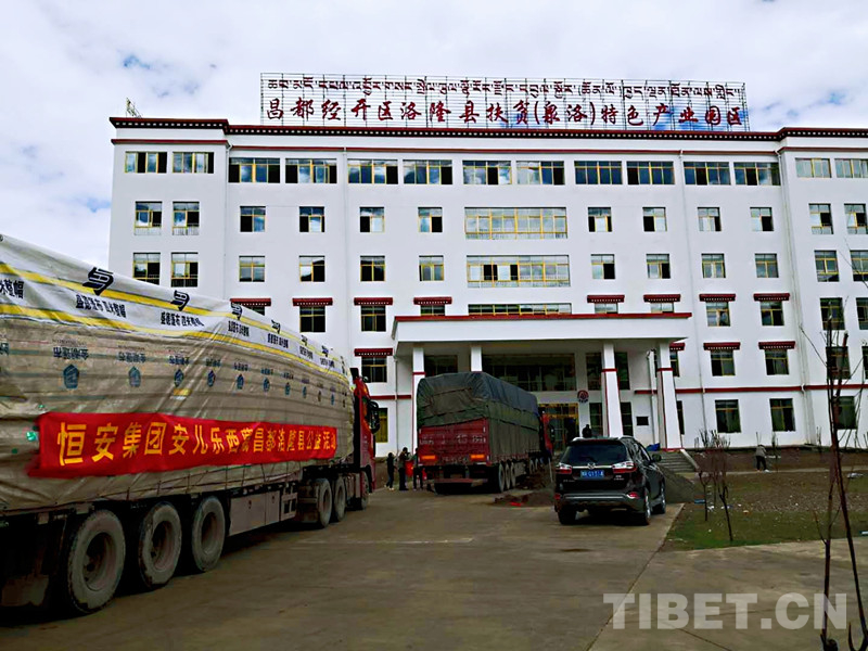 圖為裝載捐贈(zèng)品的貨車(chē)抵達(dá)洛隆縣