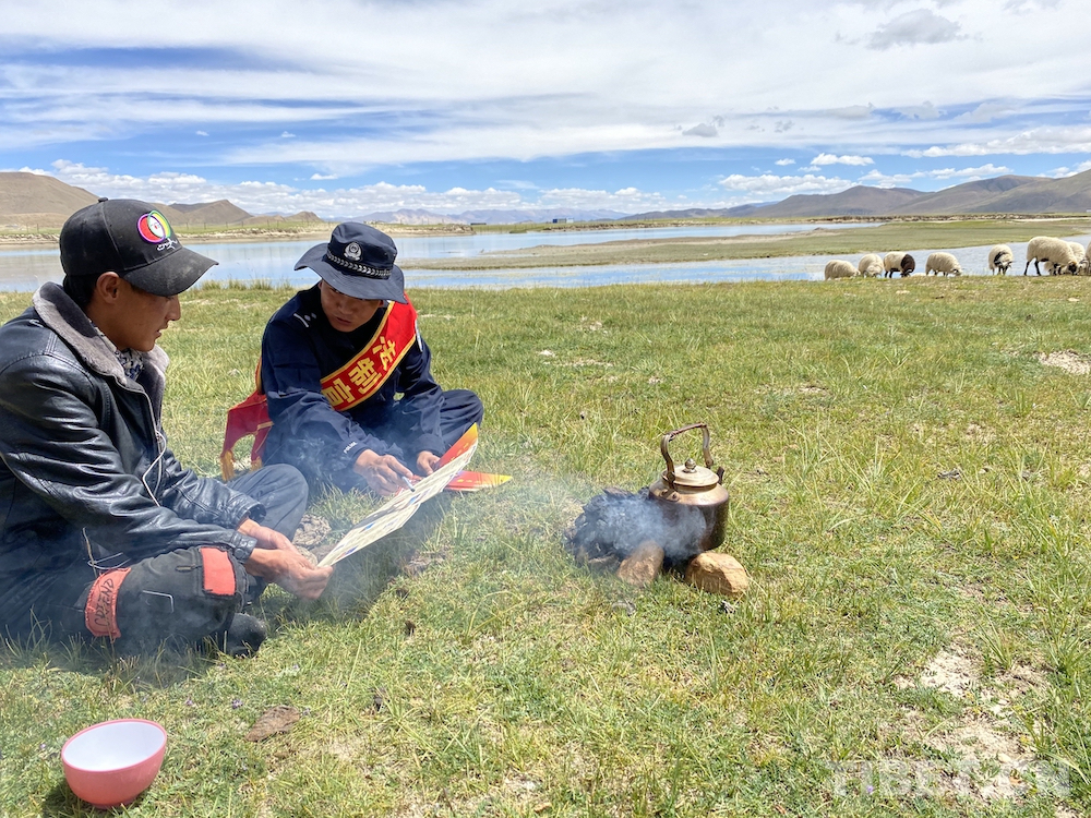 圖為陳塘邊境派出所民警給夏爾巴群眾宣講政策