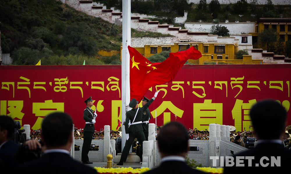 圖為2019年10月1日,西藏自治區(qū)各族各界代表慶祝中華人民共和國成立70周年升國旗儀式在布達(dá)拉宮廣場莊嚴(yán)隆重舉行。攝影:趙耀