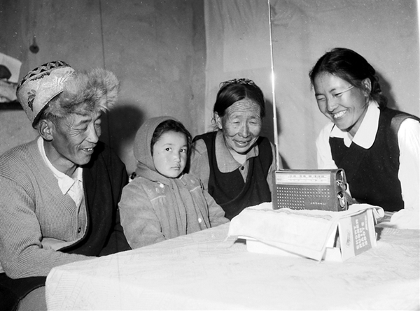 1978年 拉薩城關(guān)區(qū)東方紅居委會(huì)強(qiáng)巴群宗一家在收聽(tīng)有關(guān)十一屆三中全會(huì)的廣播消息。