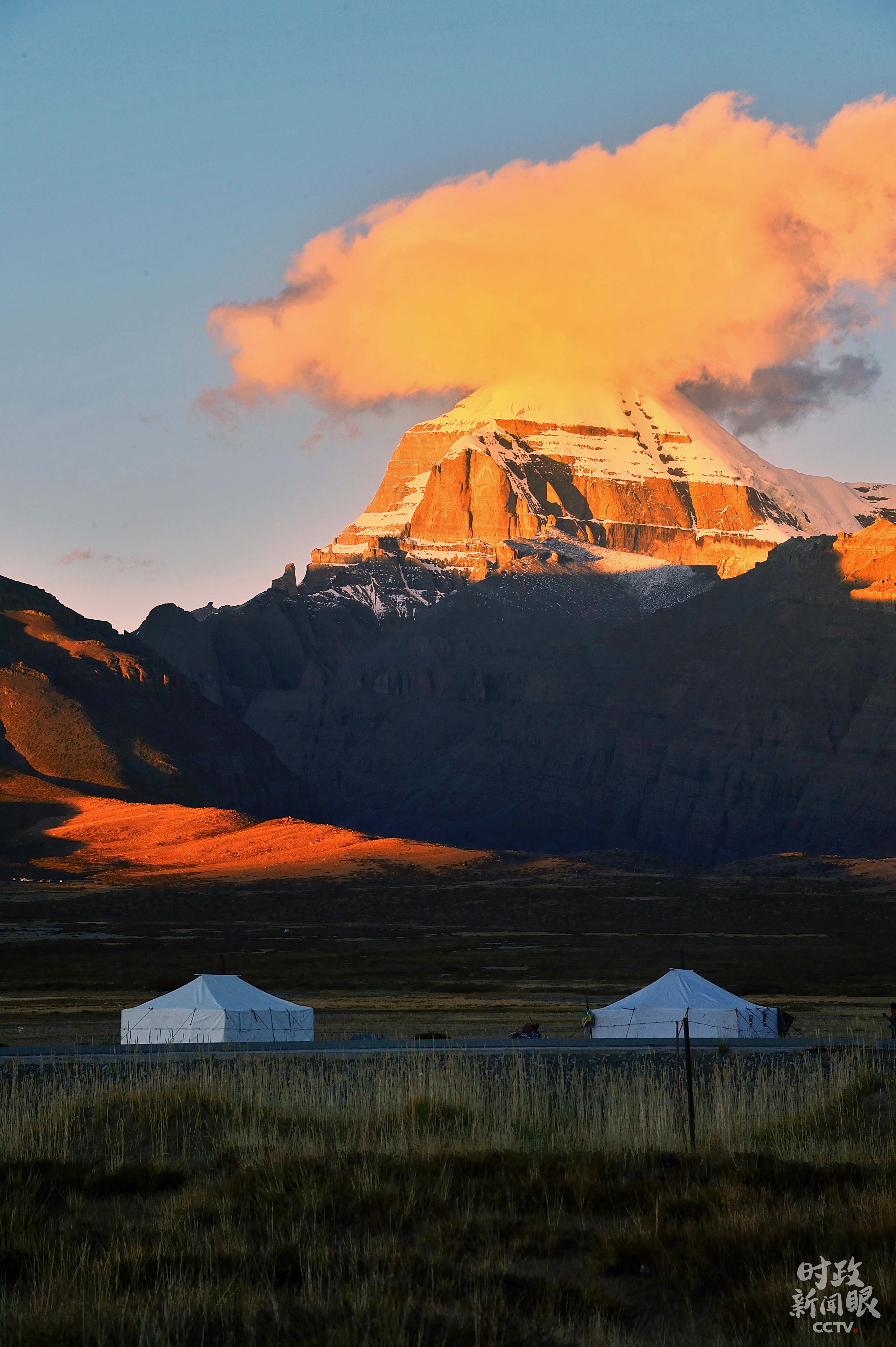 夕照中的岡仁波齊峰,意為“雪山寶貝”。