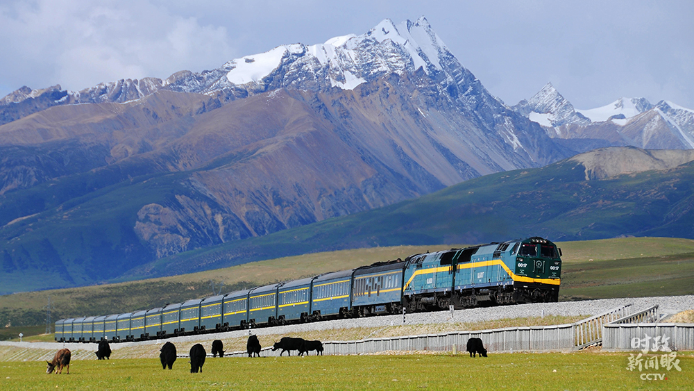 青藏鐵路列車運行在念青唐古拉山腳下。