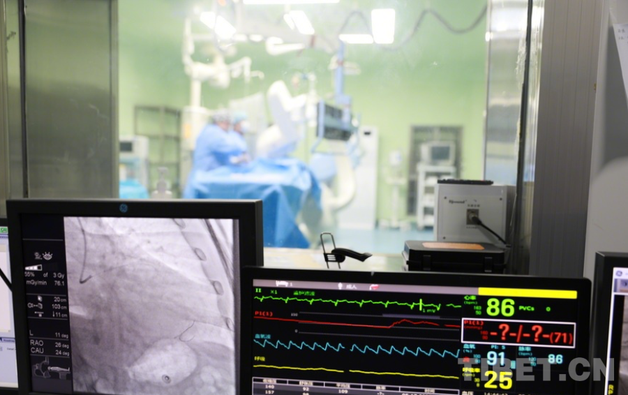 經(jīng)由醫(yī)院胸痛綠色通道,不到1點(diǎn)半,患者就進(jìn)入了手術(shù)室在局麻下行冠狀動脈造影。