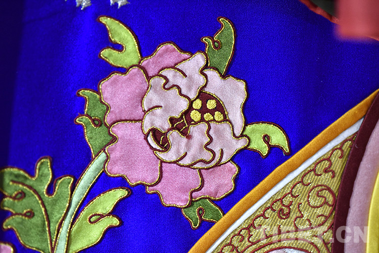 圖為羅布創(chuàng)作的堆繡唐卡局部 攝影:王媛媛