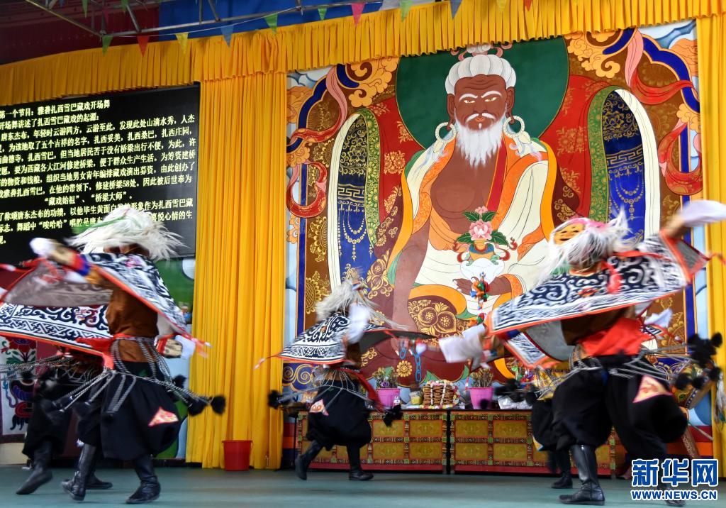 扎西曲登社區(qū)在進行雅礱扎西雪巴藏戲表演。 中新網(wǎng)左宇坤 攝