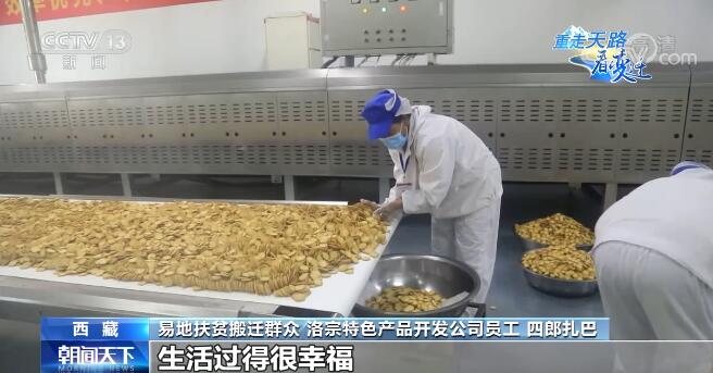 易地扶貧搬遷群眾 洛宗特色產(chǎn)品開發(fā)公司員工 四郎扎巴:我這個(gè)車間主要負(fù)責(zé)洗青稞、青稞剝皮,我妻子在泡菜車間工作,她每月2400元,我們倆加起來一年也有6萬多(元)收入,以前一年收入不到1萬(元),搬過來以后在這邊實(shí)現(xiàn)就業(yè),收入各方面都很穩(wěn)定,生活過得很幸福。