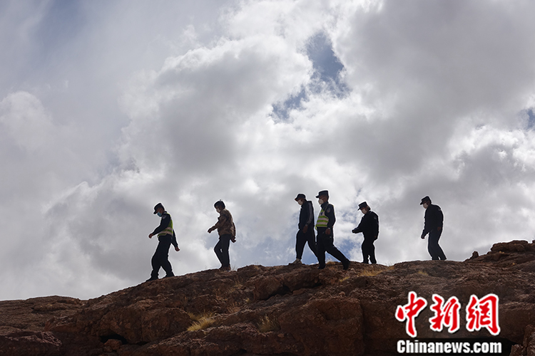 扎西崗邊境派出所民警索朗曲扎(左一)和隊友在巡邏路上。冉文娟 攝