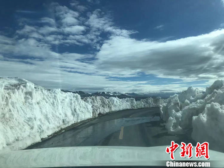 2021年6月,阿里地區(qū)札達縣通往楚魯松杰鄉(xiāng)的公路旁仍被厚厚的積雪覆蓋。冉文娟 攝