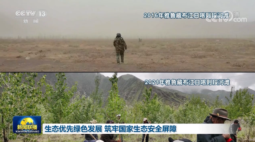 雅魯藏布江是我國最長(zhǎng)的高原河流,也被譽(yù)為西藏人民的“母親河”。而受到高原氣候、地質(zhì)等環(huán)境影響,雅江流域曾出現(xiàn)過河灘荒漠化的情況。眼前這兩張照片拍攝于雅江上游河灘的同一位置,五年的時(shí)間,荒漠變成森林,讓拍攝者次仁歐珠感慨不已。