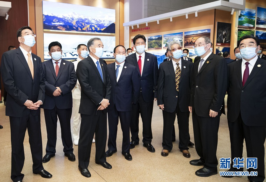 汪洋等走進(jìn)展廳,一邊仔細(xì)觀看展板,一邊認(rèn)真聽(tīng)取講解。《十七條協(xié)議》簽字儀式歷史照片、實(shí)行民族區(qū)域自治制度的展板、對(duì)口援藏資金圖表、《西藏自治區(qū)民族團(tuán)結(jié)進(jìn)步模范區(qū)創(chuàng)建條例》圖片……一塊塊展板、一張張圖片圖表,生動(dòng)展現(xiàn)了70年來(lái)西藏在黨的領(lǐng)導(dǎo)下取得的長(zhǎng)足發(fā)展。汪洋不時(shí)駐足觀看,詳細(xì)詢(xún)問(wèn)有關(guān)情況,對(duì)西藏近年來(lái)各項(xiàng)事業(yè)取得的成就予以充分肯定。