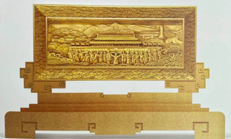 賀匾表面貼金箔,
