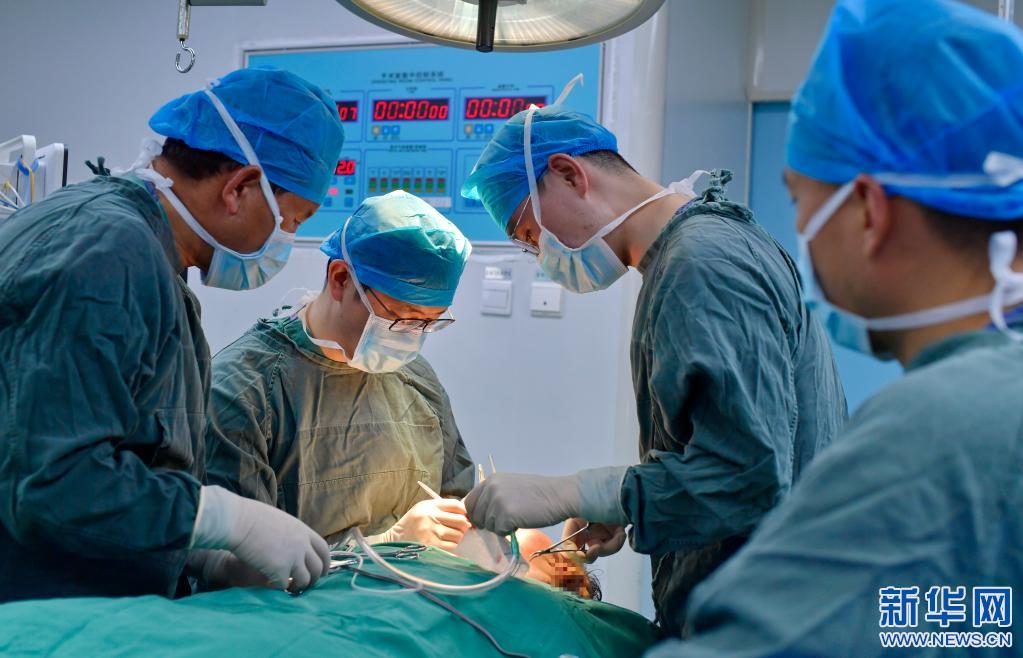 在西藏自治區(qū)人民醫(yī)院手術(shù)室,王克明為面部畸形患者做手術(shù)(5月11日攝)。新華社記者 張汝鋒 攝