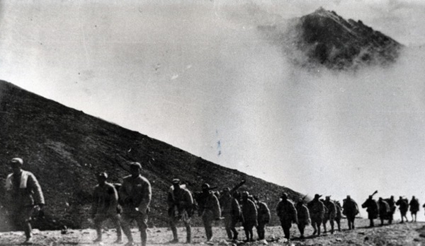 圖為進(jìn)軍西藏途中的十八軍官兵。圖片來源:人民網(wǎng)