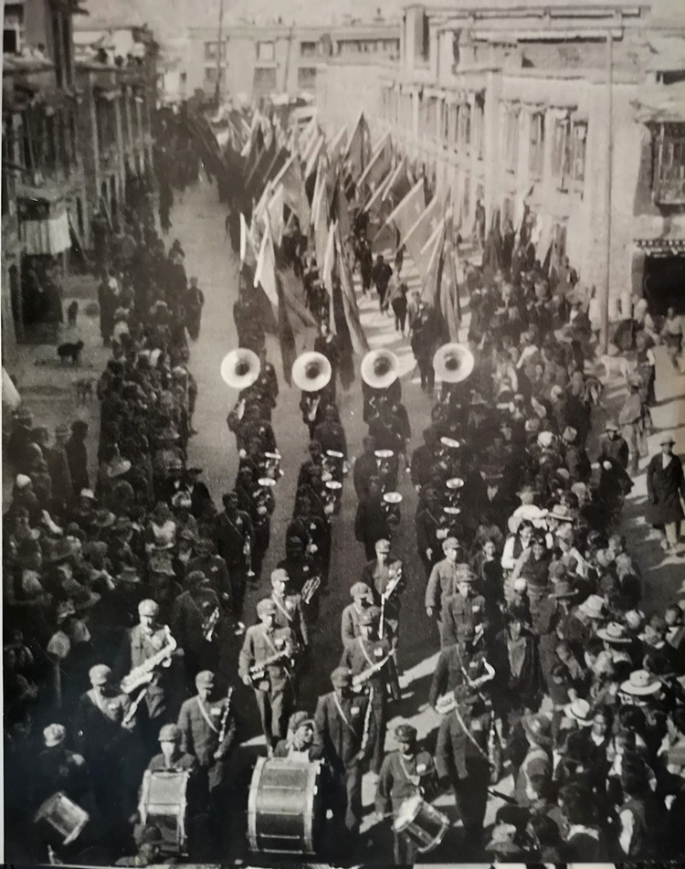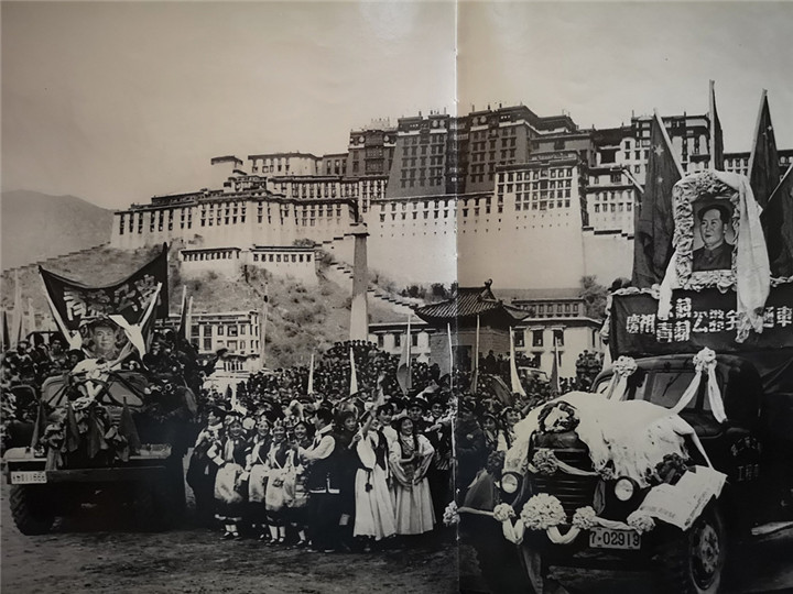 圖為人民解放軍進(jìn)藏部隊勝利到達(dá)拉薩,各族人民夾道歡迎。翻拍:李元梅