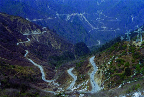圖為國道318線未通隧道前翻越二郎山的盤山公路。圖片來源:四川新聞網(wǎng)