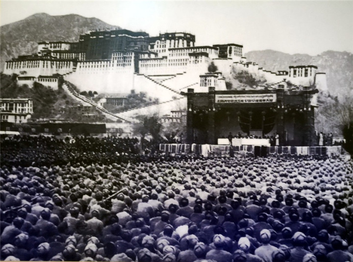 圖為1954年12月25日,在拉薩舉行的慶??挡毓罚ń翊ú毓罚⑶嗖毓吠ㄜ嚨涠Y大會。翻拍:李元梅