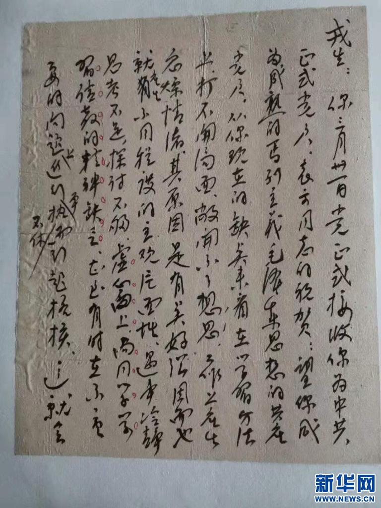 “戎生……我一生,只知為黨為人民,不知為私,你媽媽也是一樣。生出你們兄弟妹以來,均寄托出去了,不能照顧你們周到,現(xiàn)在你們均長成人了,也很努力求進(jìn)步,這就很好,對(duì)我在邊疆工作也是很大的鼓勵(lì)之一?!?/p>