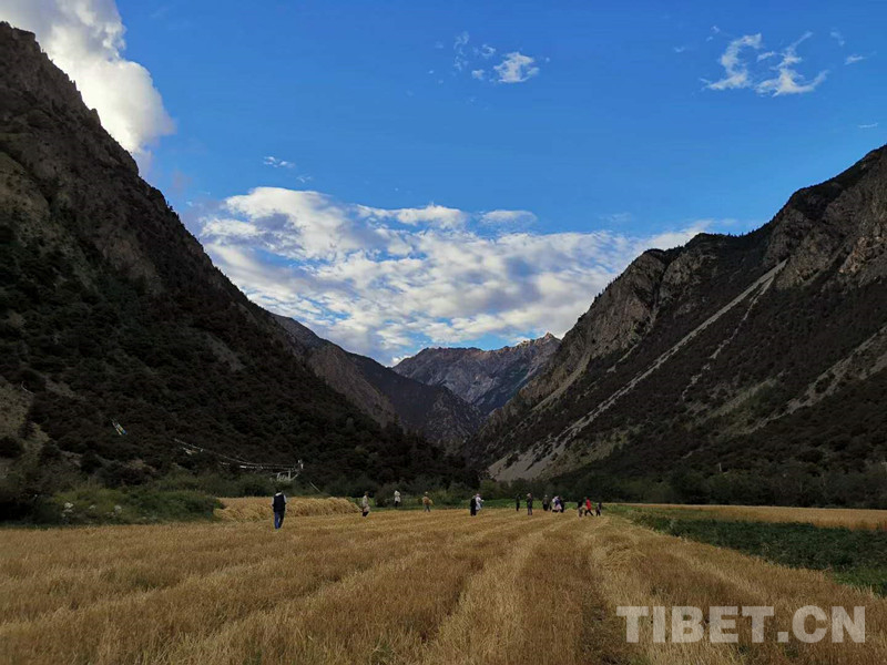 高原的仲秋是最舒服的季節(jié)。在林芝市察隅縣古拉鄉(xiāng)俄玉村的田地上,村民們正忙碌著,秋收的喜悅滲透在每一次彎腰整理麥稈、每一次捆起沉甸甸的麥穗、每一次扛起裝滿(mǎn)麥粒的袋子中。