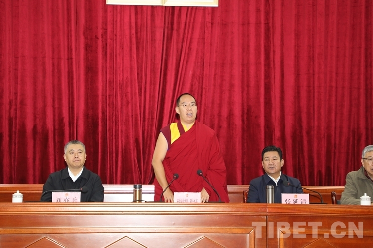 全國(guó)政協(xié)常委、中國(guó)佛教協(xié)會(huì)副會(huì)長(zhǎng)、中國(guó)佛教協(xié)會(huì)西藏分會(huì)會(huì)長(zhǎng)、援助西藏發(fā)展基金會(huì)理事長(zhǎng)班禪額爾德尼o確吉杰布參加活動(dòng)啟動(dòng)儀式并作講話。