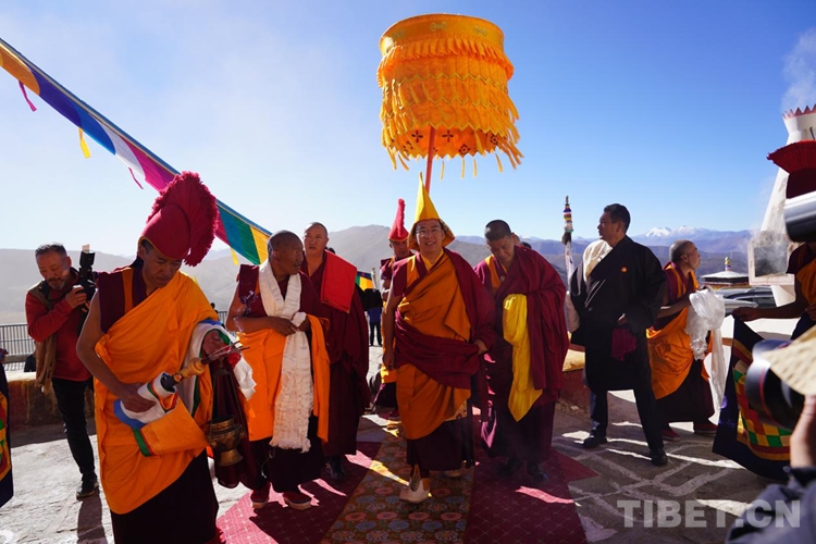圖為班禪在增寺拋灑青稞、祈愿豐收 攝影:王淑