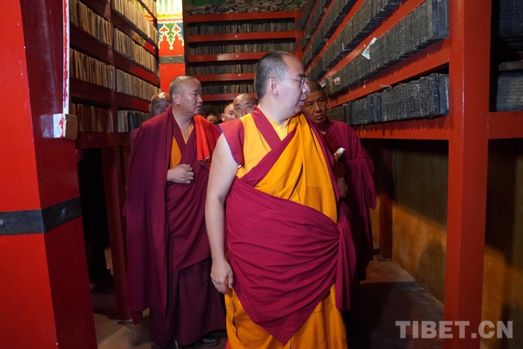 隨后班禪參觀了寺院的印經(jīng)院,納塘寺印經(jīng)院被譽(yù)為“西藏文庫(kù)”。曾刻制印刷大量的藏文經(jīng)典著作。其中包括大藏經(jīng)《甘珠爾》108部、《丹珠爾》225部,都是完整的精刻版,除文字外還有套色版畫。此套印版的首次印刷本現(xiàn)珍藏于扎什倫布寺和布達(dá)拉宮。