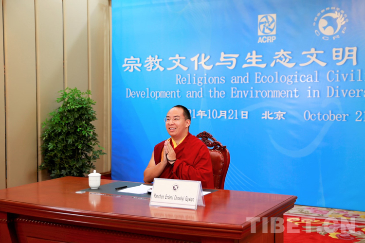 中國西藏網(wǎng)訊 10月21日,中國宗教界和平委員會(以下簡稱“中宗和”)組織召開亞洲宗教和平會議第九屆大會環(huán)境與發(fā)展分論壇暨“宗教文化與生態(tài)文明”國際研討會視頻會議?!爸凶诤汀蔽瘑T、中國佛教協(xié)會副會長班禪額爾德尼o確吉杰布在西藏自治區(qū)日喀則市以視頻連線方式參會,并作《共建人與自然生命共同體 建設清潔美麗世界》主題發(fā)言。