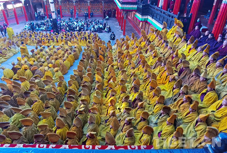 經(jīng)過(guò)數(shù)日準(zhǔn)備,26日下午,班禪于扎什倫布寺參加嘎欽學(xué)位立宗答辯。來(lái)自西藏自治區(qū)藏傳佛教各教派的堪布、經(jīng)師等高僧以及扎什倫布寺僧眾、信教群眾等800人共赴盛會(huì)、共享法喜。