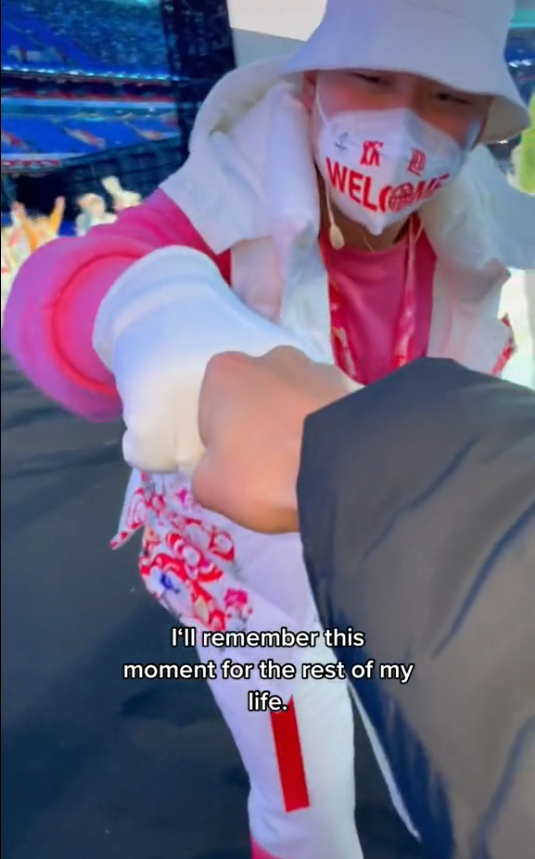 在TikTok(抖音國際版)上,德國運(yùn)動(dòng)員萊昂·沃肯施佩格分享了自己參加北京冬奧會(huì)開幕式運(yùn)動(dòng)員入場(chǎng)式的視頻。視頻中,他在入場(chǎng)過程中不斷揮手,還與開幕式上的工作人員“碰拳”。他在視頻上配文道,自己會(huì)把開幕式記一輩子。一名“粉絲”在視頻下回復(fù)他,相信他的孫輩將會(huì)以他為榮。