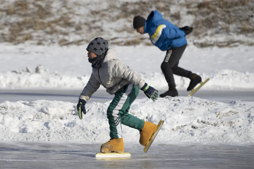 滑冰愛好者在黑龍江省七臺河市桃山區(qū)一處冰場滑冰(1月12日攝)。新華社記者 張濤 攝
