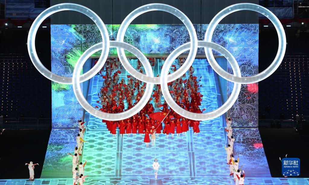 2月4日晚,第二十四屆冬季奧林匹克運(yùn)動(dòng)會(huì)開(kāi)幕式在北京國(guó)家體育場(chǎng)舉行。這是中國(guó)代表團(tuán)在開(kāi)幕式上入場(chǎng)。新華社記者 楊磊 攝