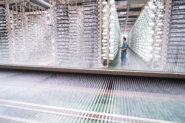 5月14日,工人在位于蘇州吳江區(qū)的一個(gè)紡織智能車(chē)間內(nèi)作業(yè)。(新華社記者李博攝)